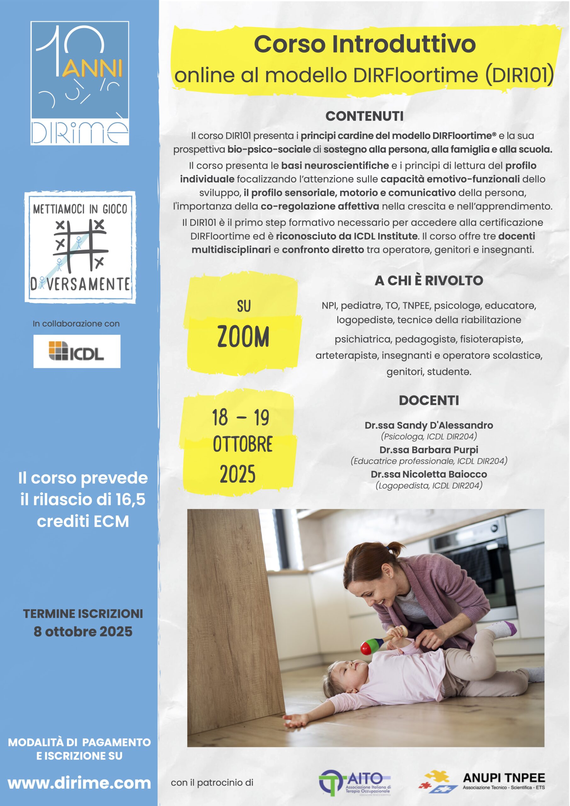 piattaforma ZOOMIl corso DIR101 Il corso Introduttivo DIR101 al DIRFloortime presenta i principi cardine del modello DIRFloortime® e la sua prospettiva