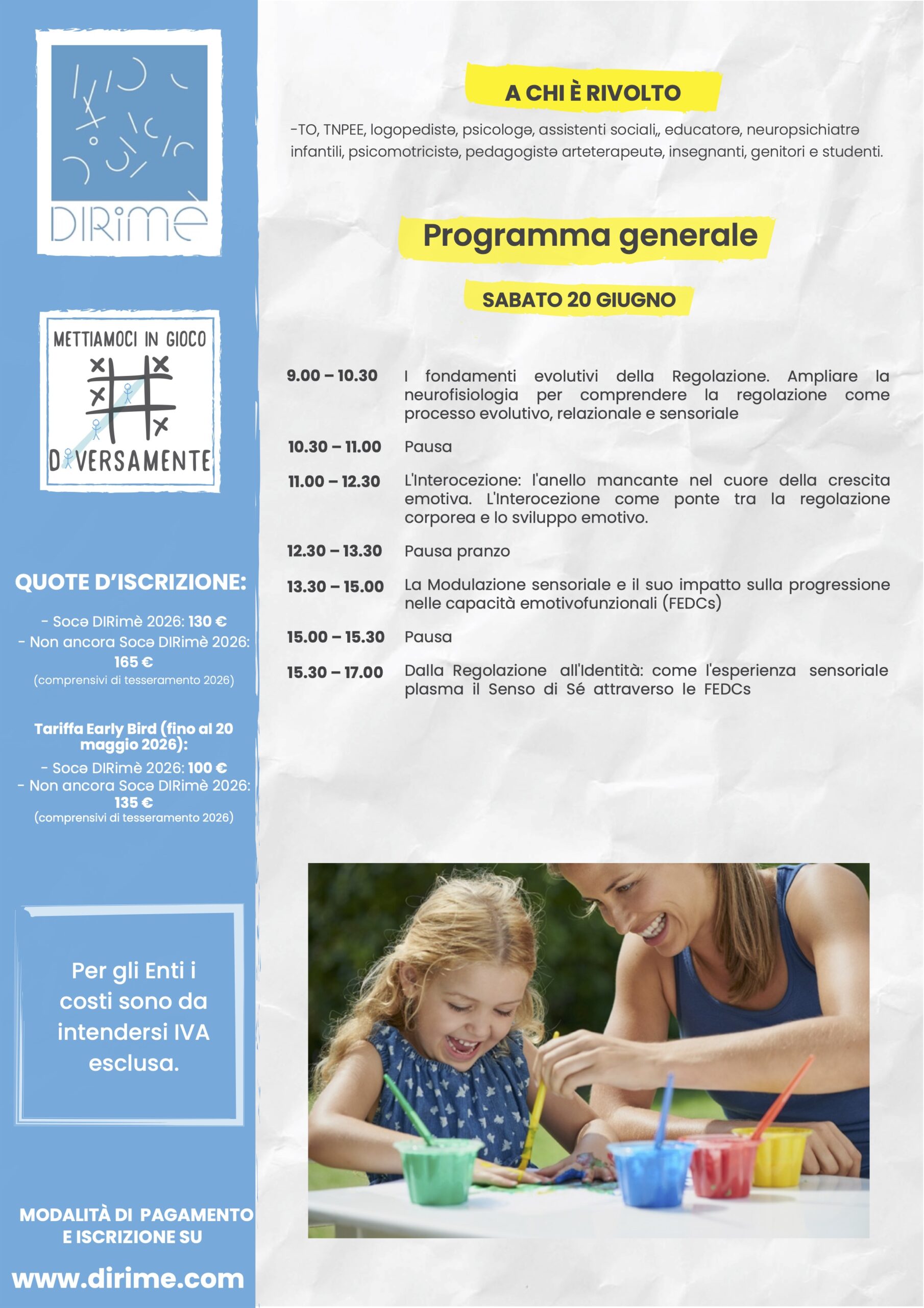 15:30 – 17:00 Dalla Regolazione all’Identità: come l’esperienza sensoriale plasma il Senso di Sé attraverso