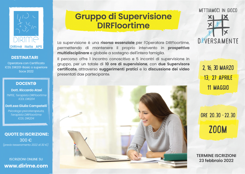 La supervisione è una risorsa essenziale per l’Operatorə DIRFloortime, permettendo di mantenere il proprio intervento in prospettiva multidisciplinare e globale a sostegno dell’intera famiglia.