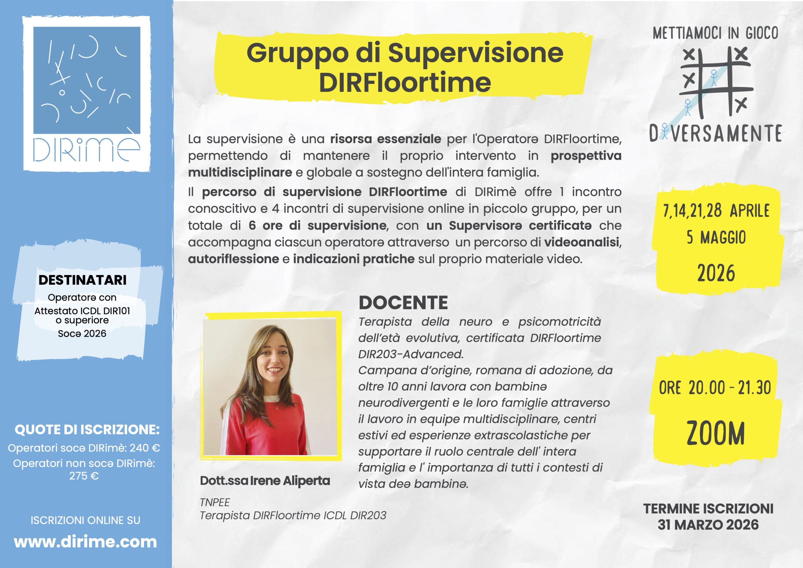 piattaforma ZOOMLa supervisione è una risorsa essenziale per l'Operatorə DIRFloortime, permettendo di mantenere il proprio intervento in prospettiva multidisciplinare e globale