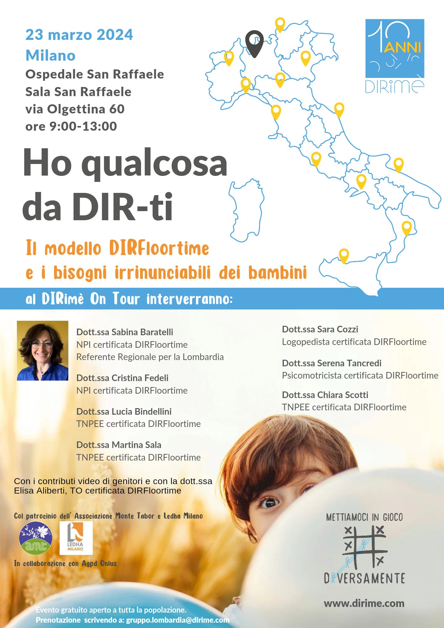 Ospedale san Raffaele Via Olgettina 60, Milano, Italia"Ho qualcosa da DIR-ti", incontro gratuito DIRFloortime in Lombardia Nel 2024 la nostra Associazione festeggia il decennale e, per celebrare questo importante