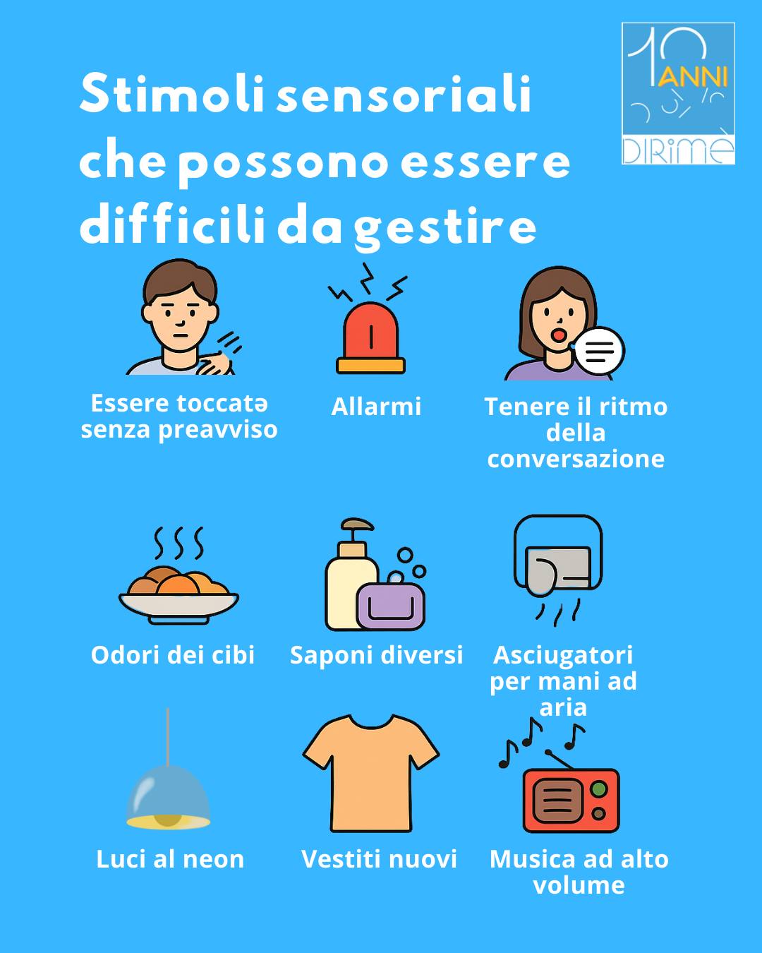 Valorizzare le differenze individuali di ciascunə significa anche approfondire seriamente il profilo sensoriale ed eventuali sensibilità meno comuni, e quindi meno visibili e conosciute. Abbiamo provato ad elencare alcuni degli stimoli sensoriali quotidiani che possono essere difficili da gestire e che possono mettere molto in difficoltà la persona nei contesti pubblici o quando non può contare su modalità di comunicazione efficaci. Per saperne di più, ti spieghiamo qui il cuore del DIRFloortime.
