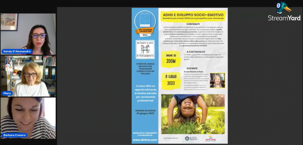 Le dott.sse Sandy D’Alessandro e Barbara Cravero, psicologhe e docenti ICDL DIR204, presnetano una piccola diretta social gratuita per fornire un’anteprima del Corso avanzato “ADHD e sviluppo socio-emotivo” di Luglio con il patrocinio di ANUPI TNPEE e AITO – Associazione Italiana Terapisti Occupazionali e in collaborazione con A Total Approach – Maude LeRoux.