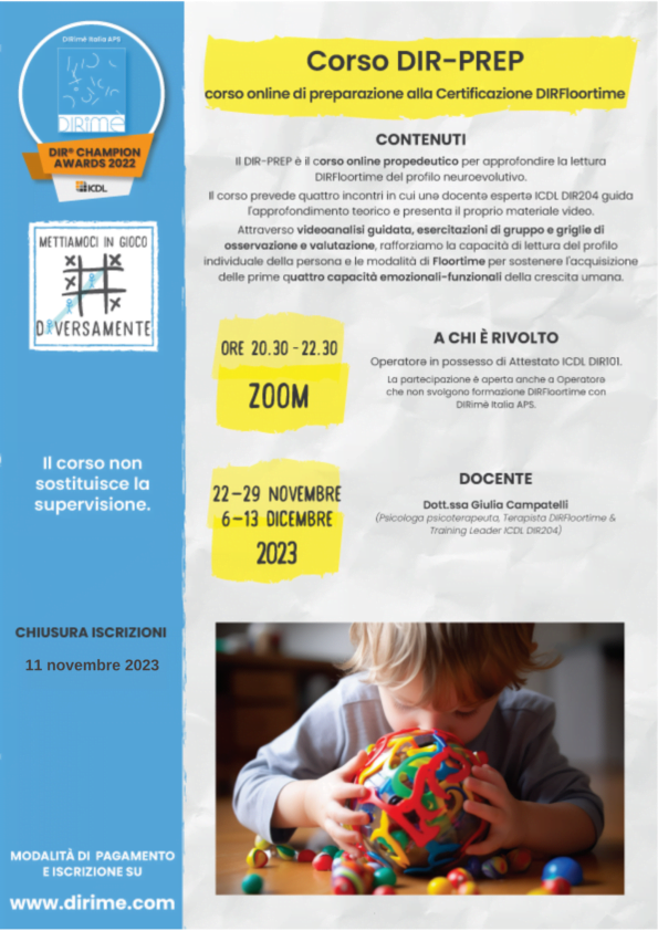 Il DIR-PREP è il corso online propedeutico per approfondire la lettura DIRFloortime del profilo neuroevolutivo.