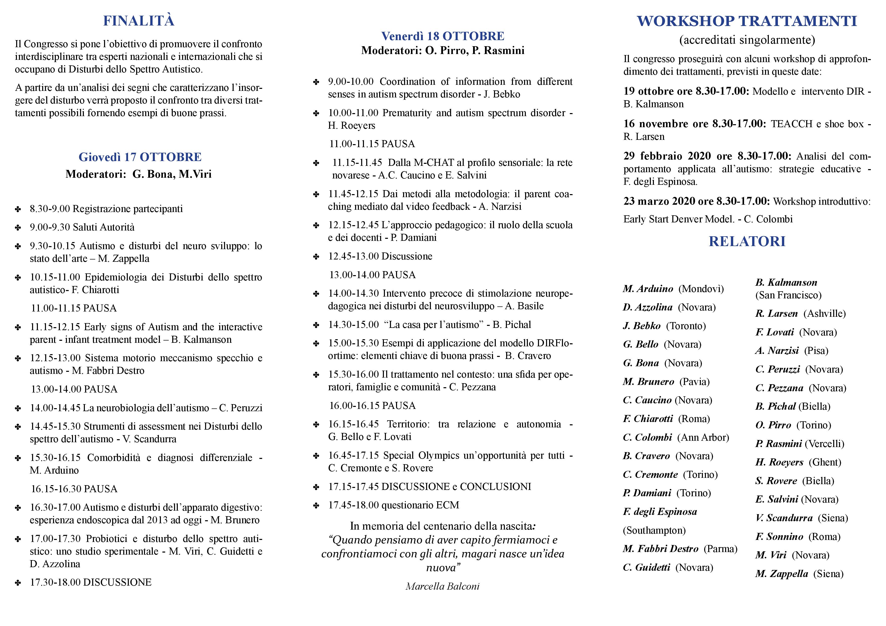 Congresso “I disturbi dello spettro autistico. Segni precoci e interventi possibili”