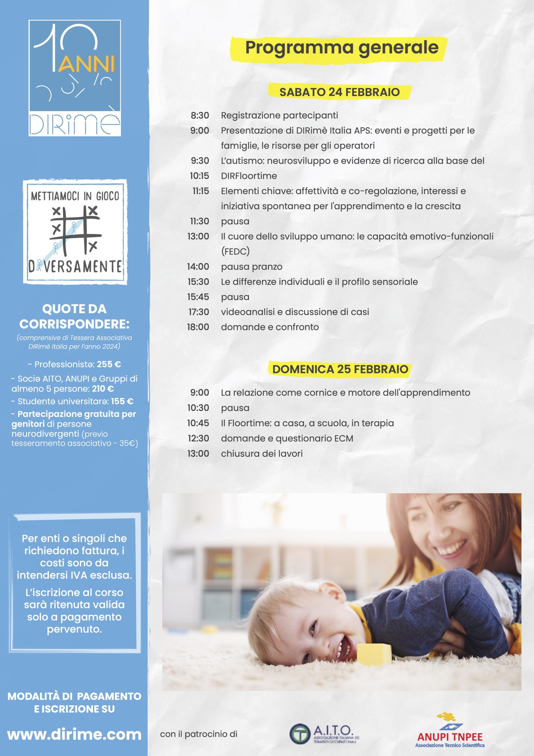 9:00 DIRimè Italia APS: gli eventi e i progetti per le famiglie, le risorse per ə professionistə