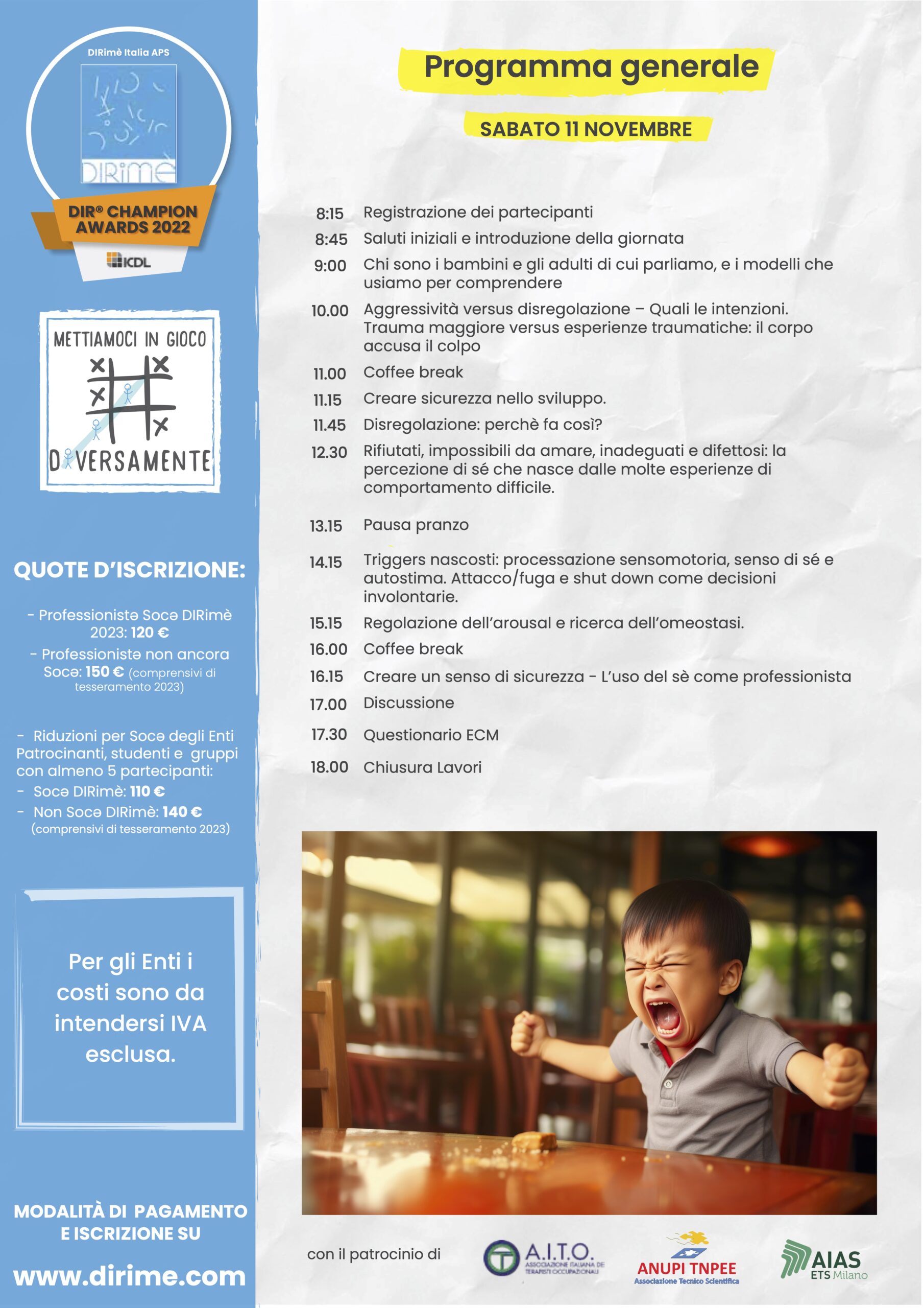 Approfondiremo come creare sicurezza nei momenti di stress e come gestire la nostra stessa reattività per supportare anche l’adultə di riferimento in interazioni sicure con lə bambinə.