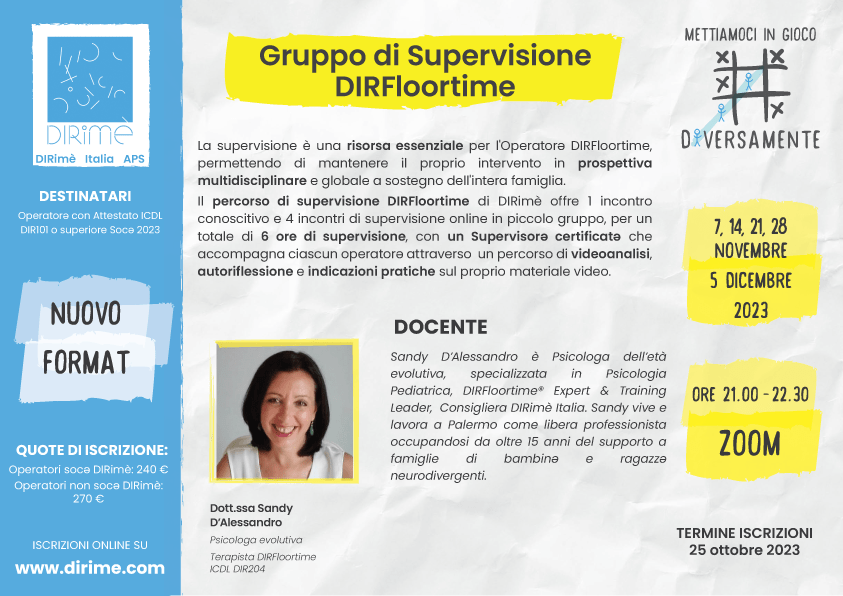 La supervisione è una risorsa essenziale per l’Operatorə DIRFloortime, permettendo di mantenere il proprio intervento in prospettiva multidisciplinare e globale a sostegno dell’intera famiglia.