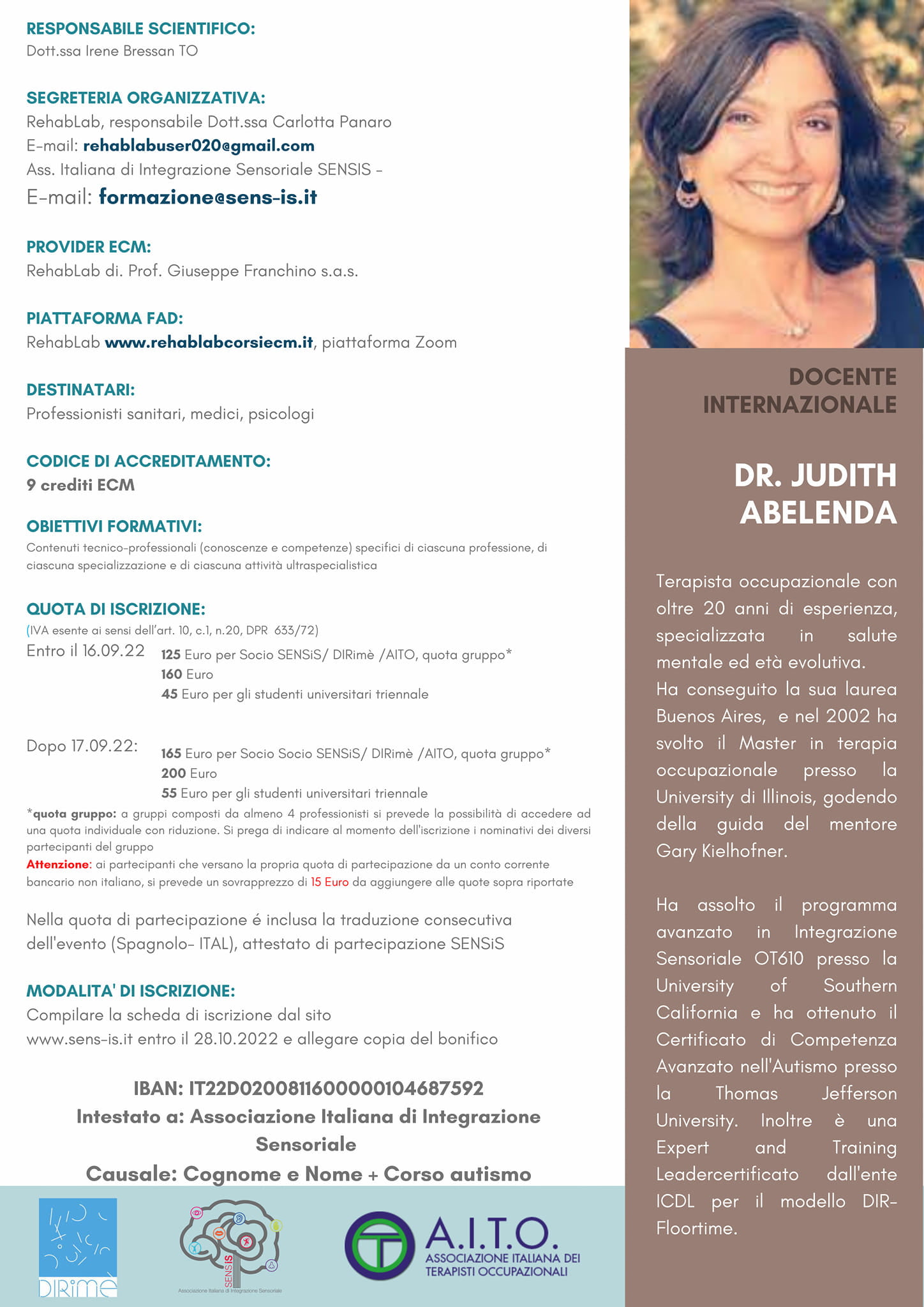 L’integrazione sensoriale e le caratteristiche dell’autismo, 12-13 Novembre 2022